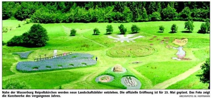 Die Kunst im Grünen und der Skulpturenwanderweg liegen zu Füßen der Burg und sind vom Burgfried aus sehr schön einzusehen.